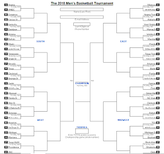 It’s the most wonderful time of the year! March Madness 2018 is here and the first of the four “play-in” games will begin on Tuesday, March 13th . Once again, I’ll be using David Tyler’s NCAA Excel brackets, the same ones I’ve been using since at least 2010, as they're still the best as far as I’m concerned. I'd like to give a special thanks to David for continuing to update, tweak, and post his excellent brackets each and every March and giving us something to look forward to as we crawl out of the final few weeks of winter (snowing again here in Ohio, I hoped we were done with winter).